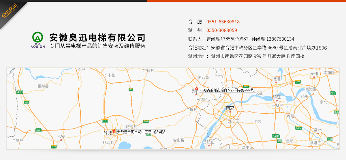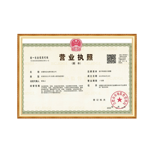 - 安徽奧迅電梯有限公司是一家專門從事電梯產(chǎn)品銷售、安裝、維修、保養(yǎng)、舊梯改造一體化運(yùn)營,零配件銷售及與電梯相關(guān)技術(shù)咨詢、培訓(xùn)的專業(yè)有限公司。公司成立于2015年6月,注冊(cè)資本1020萬元人民幣。 我公司具有安徽省質(zhì)量技術(shù)監(jiān)督局頒發(fā)的關(guān)于特種設(shè)...